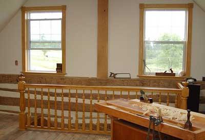 A bench area for hand work is located upstairs, with views over the surrounding fields.